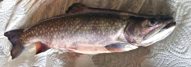 Bachsaibling, gefangen bei der Forellenzucht "Trauntal" im Kreis Birkenfeld am 6. April 2019.