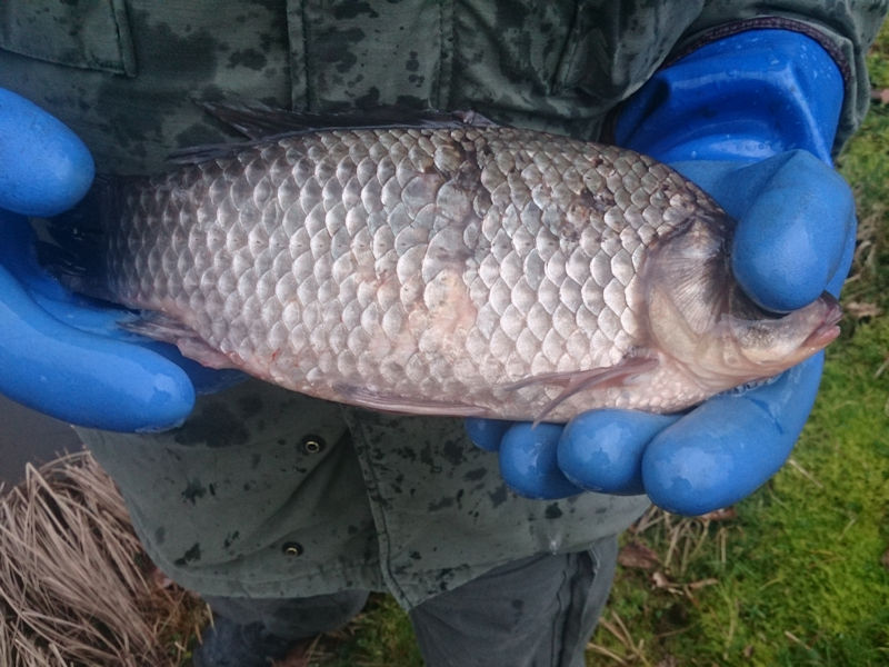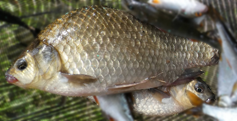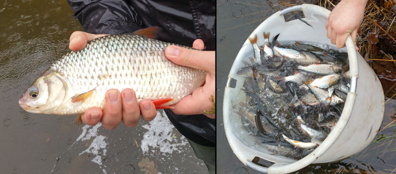 Mitbesatz von Giebel / Silberkarausche im Wildfang der bestellten Rotaugen / Plötzen am 15. Februar 2016.