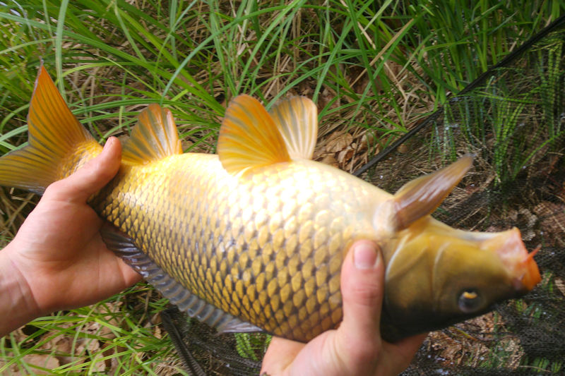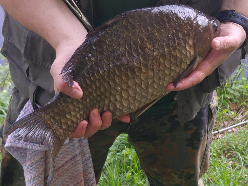 20 cm kleine Karauschen aus dem Badeweiher Birkenfeld am 25. Juni 2022.