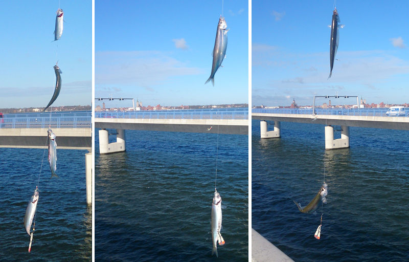 Angeln im Strelasund/Ostsee in Stralsund. Unterschiedliche Fänge des Vormittags am 13. Juli 2018:
