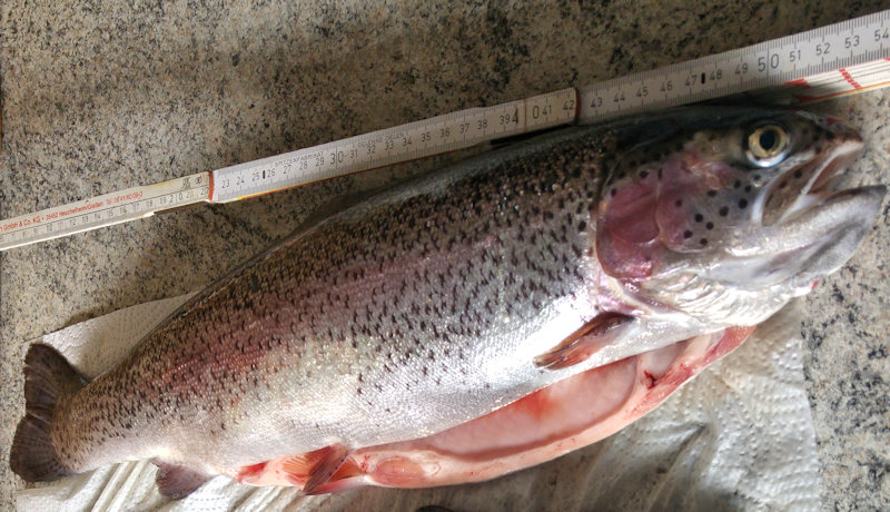 Regenbogenforellen aus dem Großen Rascheweiher in Birkenfeld.