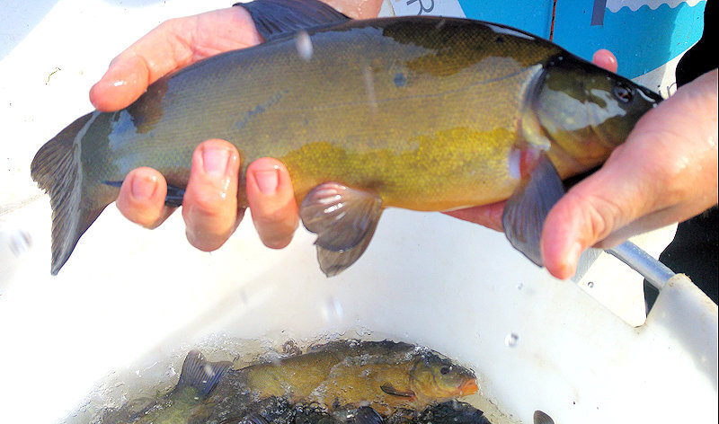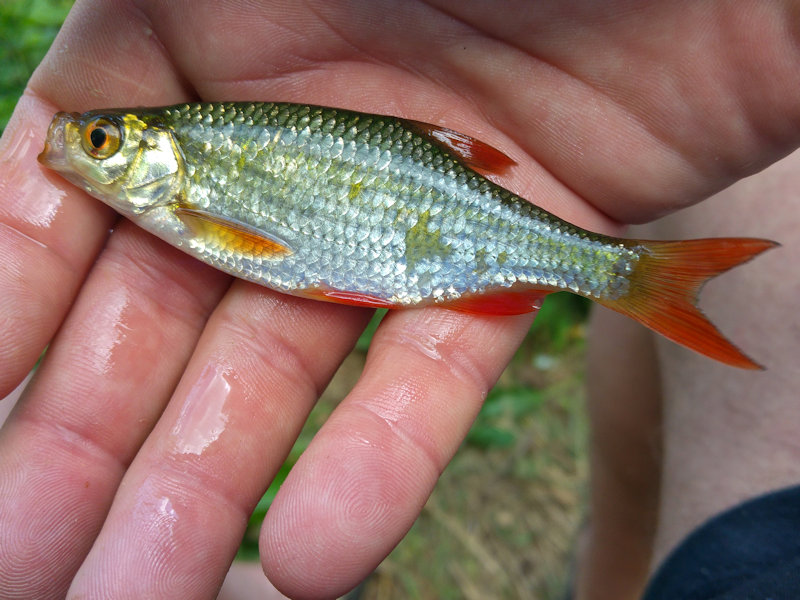 Begutachtung einer Rotfeder aus dem Großen Rascheweiher in Birkenfeld.