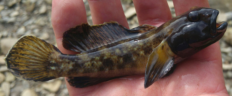 Vom Kaspischen Meer eingewanderte Schwarzgrundel aus der Mosel in Niederfell am 10. Juni 2020.