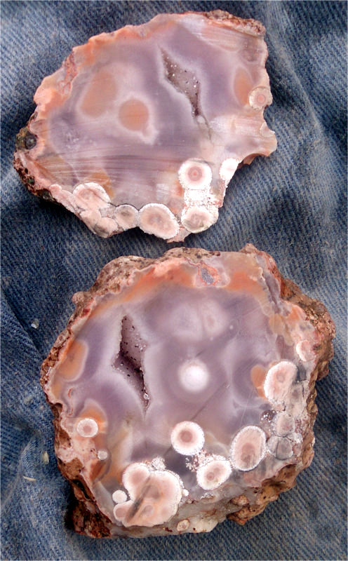 Achat-Geoden als aufgeschnittene Druse und kleine gefüllte Mandel aus dem aktiven