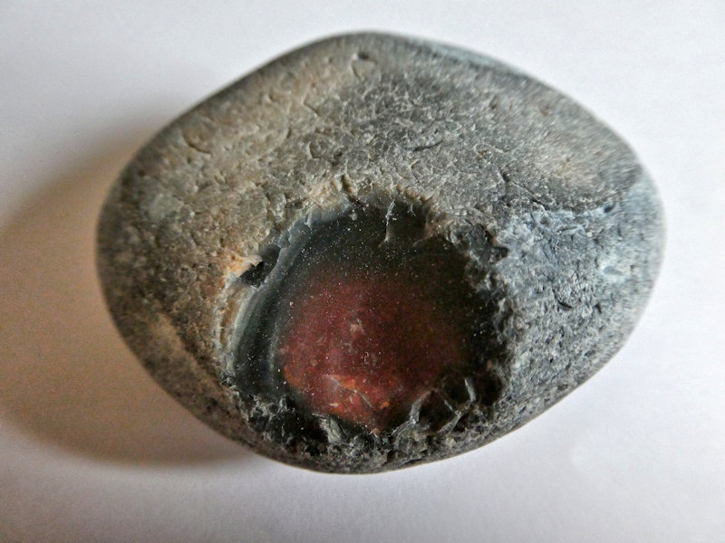 Aufgeschnittene Achat-Mandel mit kleiner Druse. Ackerfund aus dem Raum Birkenfeld.