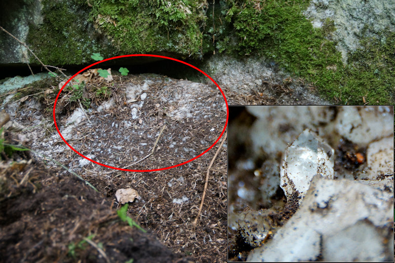 Kleines aufgebrochenes Achet-Geoden-Teilstück aus dem ehemaligen Achatstollen bei Uzenbach auf gesperrtem Gelände des Truppenübungsplatzes Baumholder Kreis Birkenfeld.