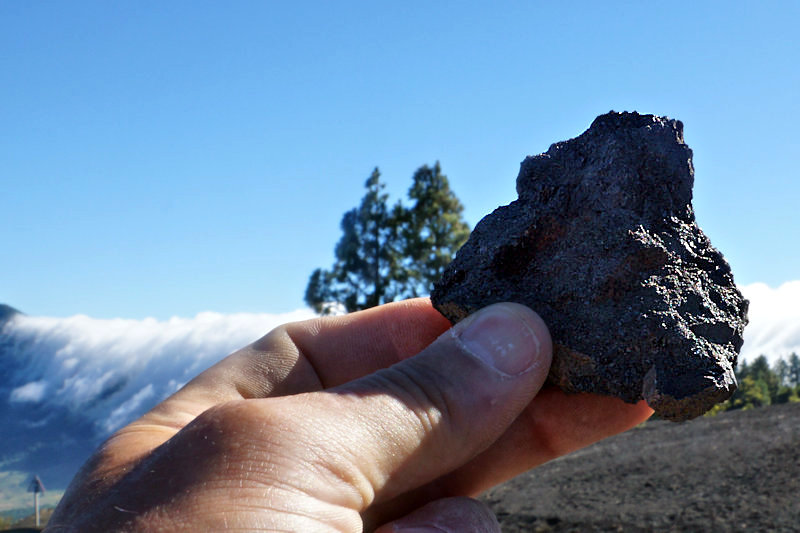 Hornblende vom Mirador Astronómico del Llano del Jable auf der Kanarischen Insel La Palma.
