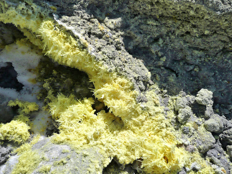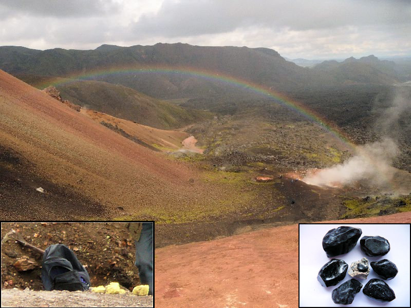 Sammeln von kristallinem Schwefel und Obsidian-"Perlen" im Regen in