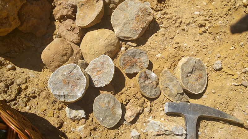 Barytknollen mit eingeschlossenen pflanzlichen Fossilien aus dem Tertiär in