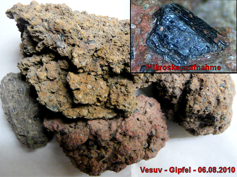 in Italien. Mikroskop-Aufnahme eines der darin befindlichen Augit-Kristalle.
