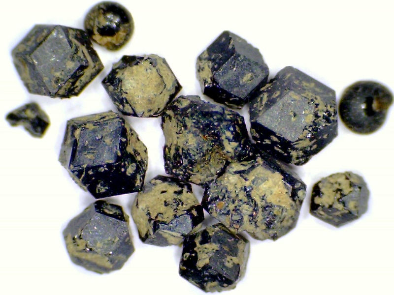 Schwarzer Granat von einem Acker bei der Hannebacher Ley in der Osteifel.