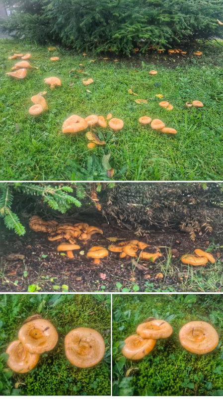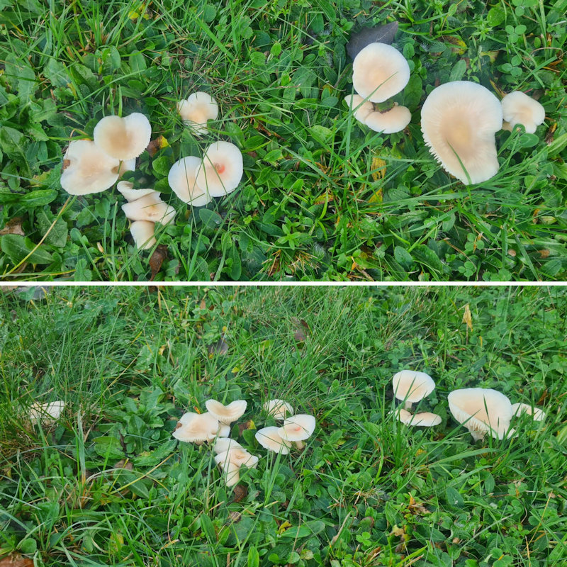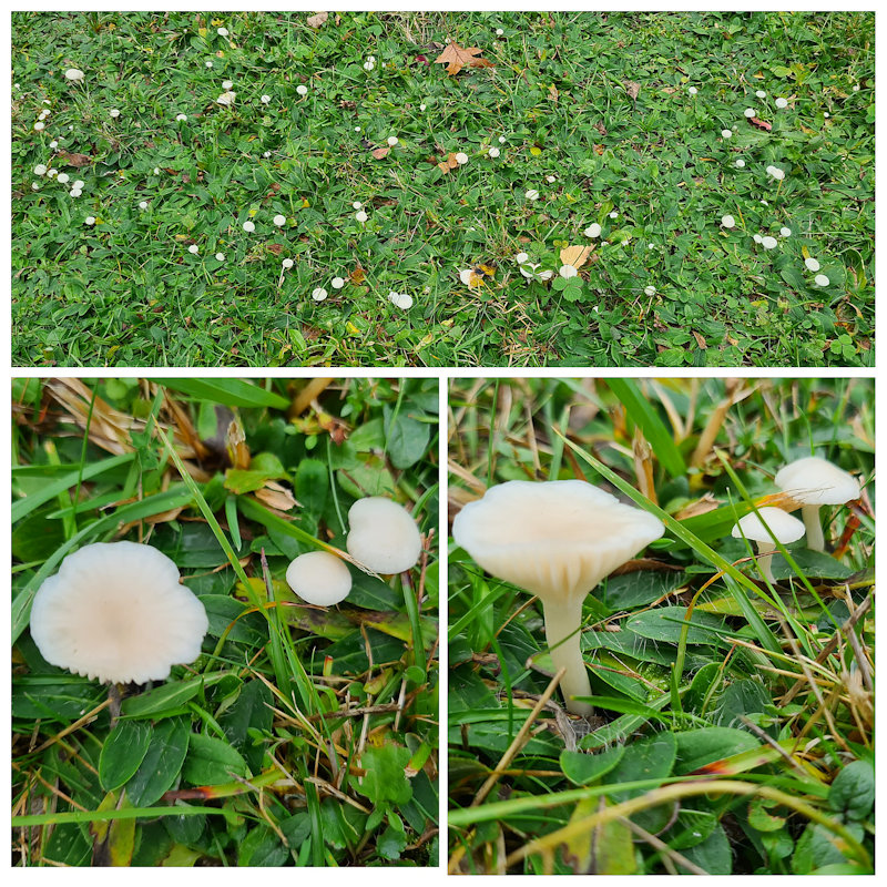 Schneeweiße Ellerlinge vor unserem Garten am 11. November 2023.