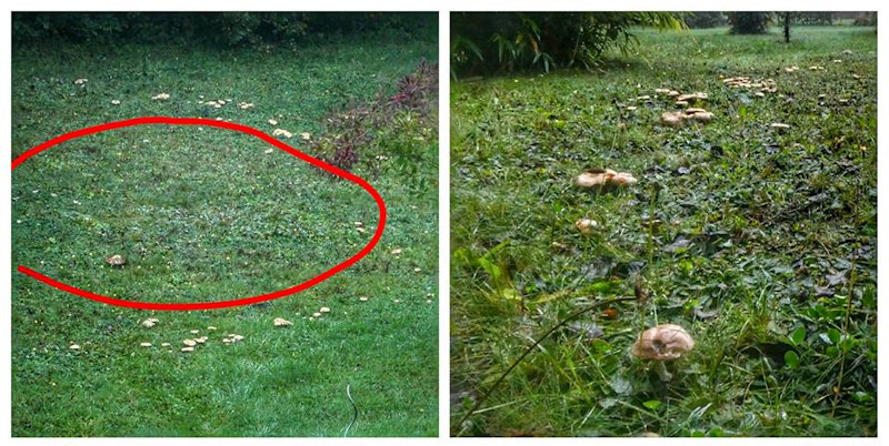 Hexenring aus Fichtenreizkern hinter unserem Garten am 01. Oktober 2017.
