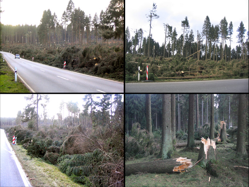 Windbruch durch den Orkan Kyrill am 18. Januar 2007 im Hunsrück