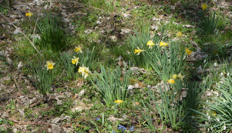 Wilde Narzissen im Wald kurz vor Schmißberg bei Birkenfeld am 4. April 2021.