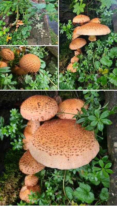 Sparrige Schüpplinge am Hang vor der Terrasse am Haus, am 14. und 22. Oktober 2023.