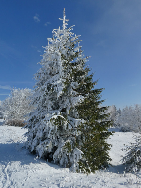 Auf der Sonnenseite angetaute "Winter"-Fichte auf dem Erbeskopf am 8. Februar 2018.