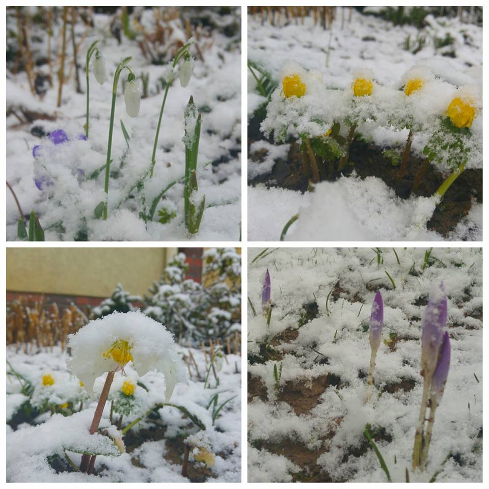 Schneebedeckte Winterblüher in unserem Vorgarten am 02. Februar 2018: