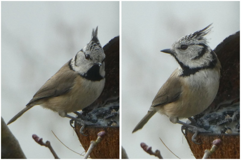 Haubenmeise auf der Terrasse am 26. Februar 2023.