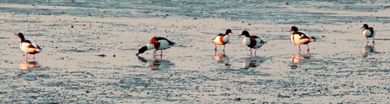Brandgänse weit draußen bei Ebbe in der Nordsee vor Neuharlingersiel am 26. Oktober 2011.