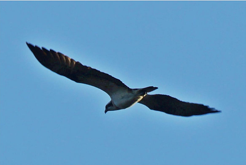 Fischadler als Durchzugsgast über der Forellenzuchtanlage "Trauntal" in Börfink Kreis Birkenfeld am 22. April 2019.