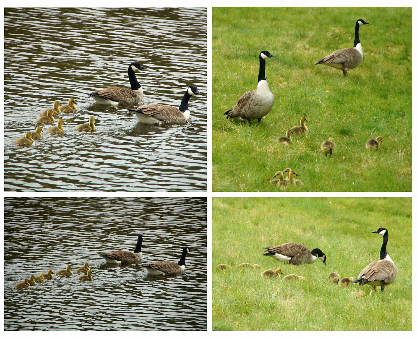 Exotische Kanadagänse mit Nachwuchs am Badeweiher in Birkenfeld.