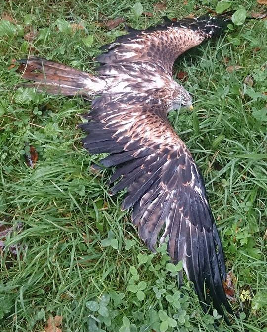 Rotmilan, schwer verletzt (Rattengift), gefunden am 12. September 2014 auf dem Fußweg zum Großen Rascheweiher in Birkenfeld und beim Tierarzt abgegeben.