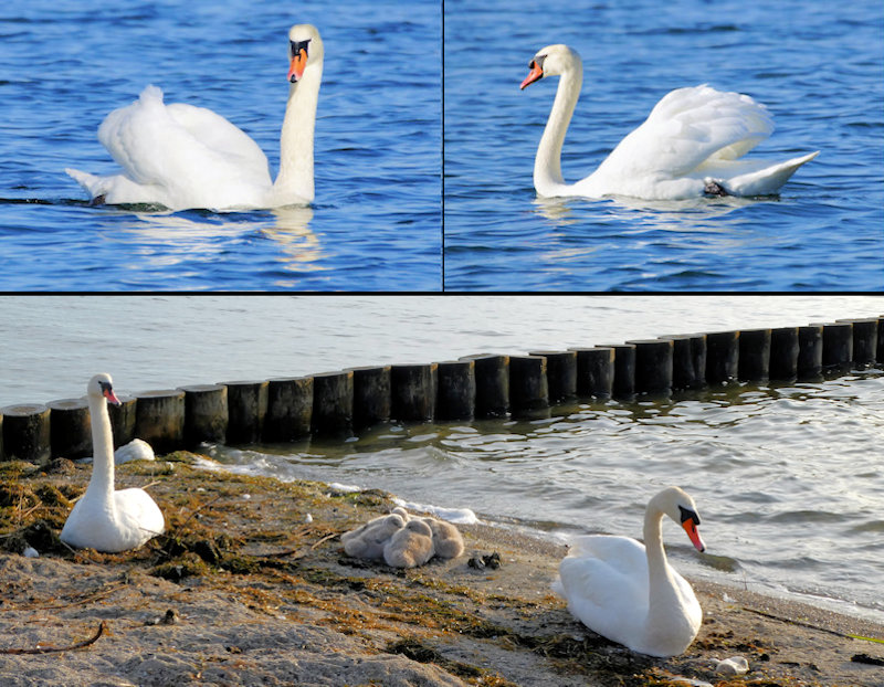 Höckerschwäne auf dem Strelasund in Stralsund am 10. Juli 2017.