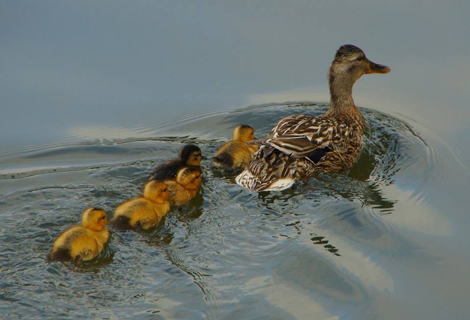 Stockente mit Jungen in der Lahn in Lahnstein am 18. Juni 2014.