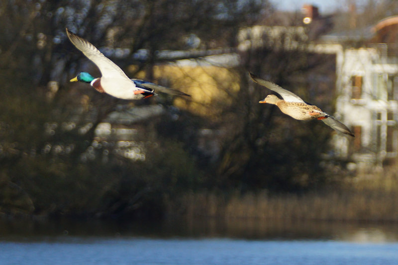 Stockentenpaar über dem Knieperteich in Stralsund am 8. April 2012.