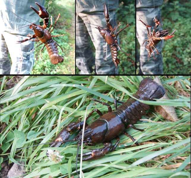 Amerikanischer Flusskrebs beim Angeln an der Nahe in Georg-Weierbach Kreis Birkenfeld am 12. Juli 2015.