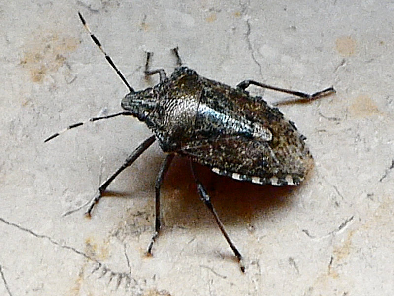 Eine Graue Gartenwanze auf dem Fensterbrett in meinem Büro am 11. Mai 2020.