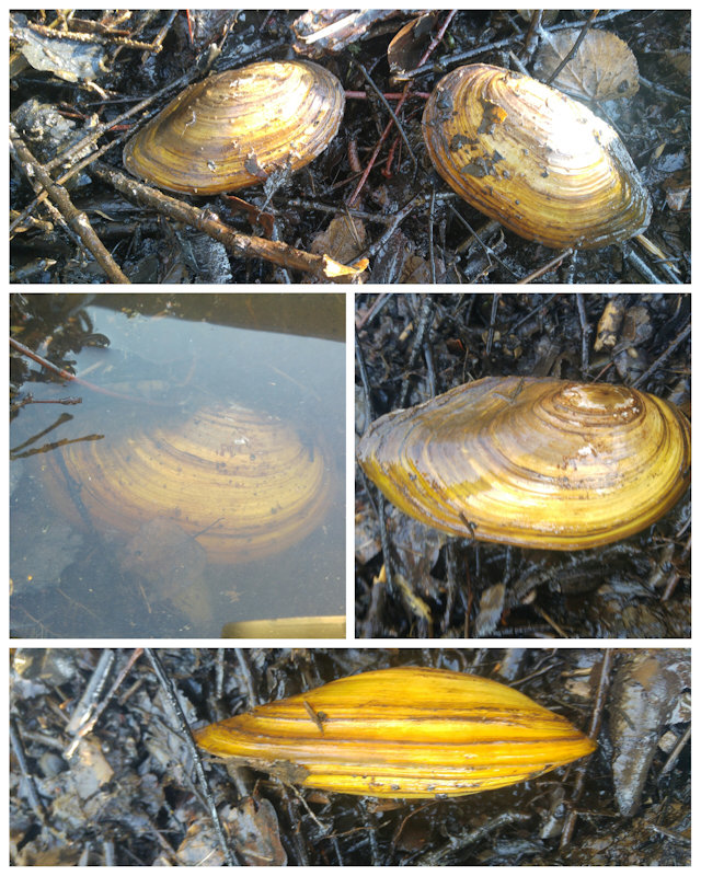 Große Teichmuscheln im Sielbachweiher in Birkenfeld am 17. April 2020.