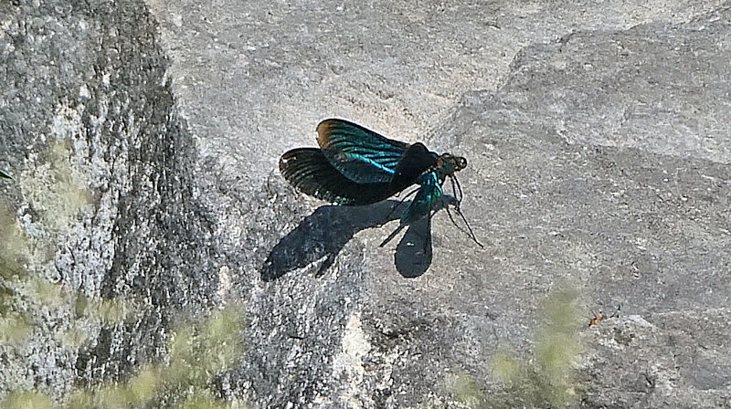 Eine Gebänderte Prachtlibelle am Schlandwiesbach vor unserem Haus.