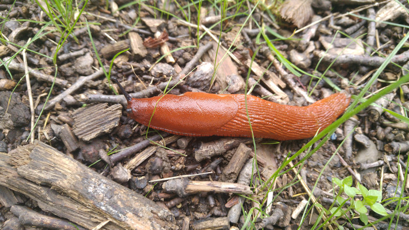 Rote Wegschnecke am Wegesrand in Lahnstein a.d.H.