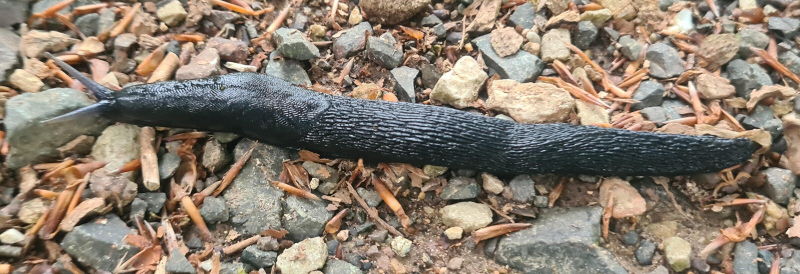 Tigerschnecke vor unserem Kellerausgang. Auch eine Raubschnecke gegen andere Nacktschnecken.