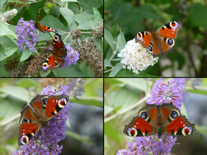 Tagpfauenaugen auf dem Sommerflieder neben unserem Garten.