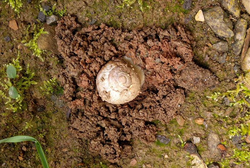 Eine Weinbergschnecke gräbt in unserem Vorgarten ein Loch zur Eiablage.